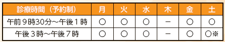 休診日:木曜日、日曜日、祝日(臨時休診有り)