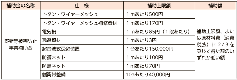 イノシシ等の野生鳥獣による農作物被害の防止のため、個人もしくは団体の防護柵(ワイヤーメッシュ・電柵等)設置に対し、予算の範囲内で補助します。