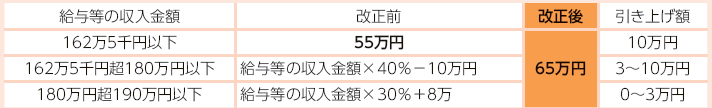 (1)給与所得控除額が見直され、最大10万円引き上げられます。