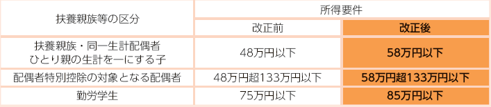 (2)各種扶養控除に係る所得要件が10万円引き上げられます。
