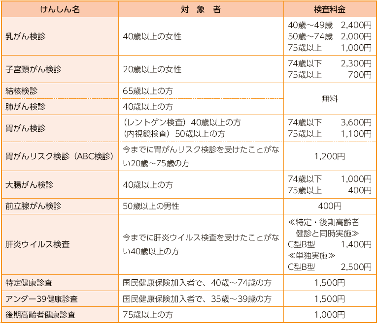 ※けんしんを受ける前に、医療機関へ予約をして受診してください。