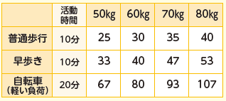 〔参考〕身体活動で消費する体重別エネルギー量(kcal)
