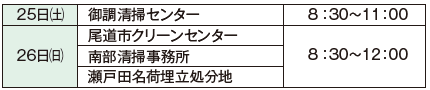※向島クリーンセンター・因島リサイクルセンターは、休日の持込受付はありません。