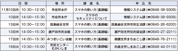 対象:スマホを持っていない人やスマホを使い慣れていない人など
