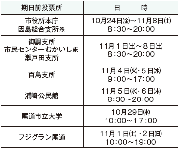 投票日に仕事やレジャー等で投票できない人は、期日前投票ができます。どの期日前投票所でも投票ができます。※事前に入場券を切り取り、宣誓書を記入して持参していただくとスムーズに投票できます。