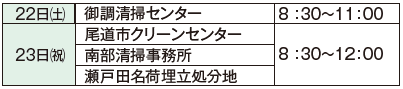 ※向島クリーンセンター・因島リサイクルセンターは休日の持込受付はありません。
