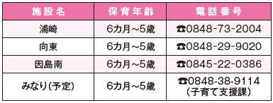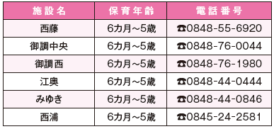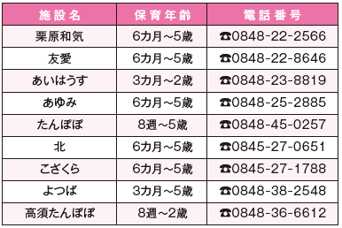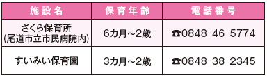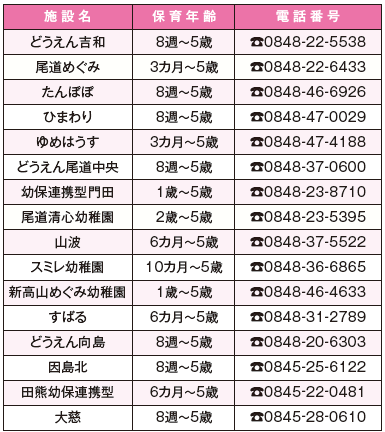 ※因島総合病院託児所は令和7年度末をもって閉園予定です。