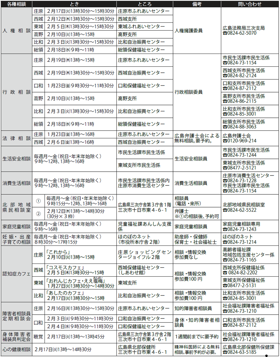 くらし あなたの相談をお受けします 17/36 前の記事 次の記事 発行日 : 2026年01月06日 自治体名 : 広島県庄原市 広報紙名 : 広報しょうばら 2026年1月号(No.250) 悩みごと、心配ごと、困りごとなど、お気軽にご相談を Tweet シェアする 健康広場 子育て世代包括支援センター事業・母子保健事業