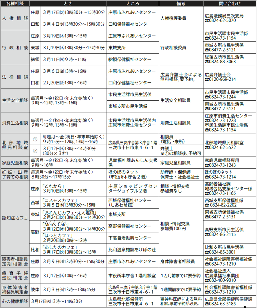くらし あなたの相談をお受けします 20/38 前の記事 次の記事 発行日 : 2026年02月05日 自治体名 : 広島県庄原市 広報紙名 : 広報しょうばら 2026年2月号(No.251) 悩みごと、心配ごと、困りごとなど、お気軽にご相談を Tweet シェアする 健康広場 母子保健事業