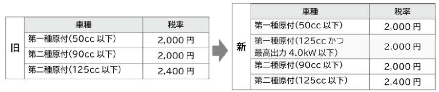 新基準原付の税率は、現行の50cc以下の原付と同じ2,000円です。