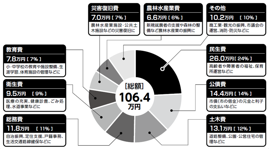 令和6年度は、エネルギーや食料品価格が高止まりする中、低所得世帯や子育て世帯などに対する給付金、学校給食費の負担軽減、飼料高騰対策支援金やタクシー事業者運行継続支援奨励金などの経済対策事業の実施により、物価高騰のあおりを受ける市民生活の負担軽減や、事業者の事業継続に向けた支援を行いました。