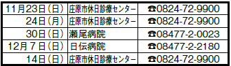 11月・12月の休日診療については、次のとおりです。