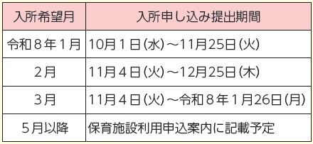 令和8年4月入所の受付期間:11月4日(火)~28日(金) 8:30〜17:15(土・日・祝日を除く)