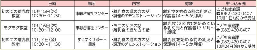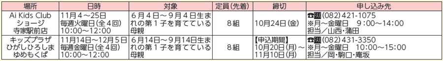 場所:西条東保育所、三津保育所、認定こども園とよさか、西条みづき認定こども園、八本松みづき認定こども園