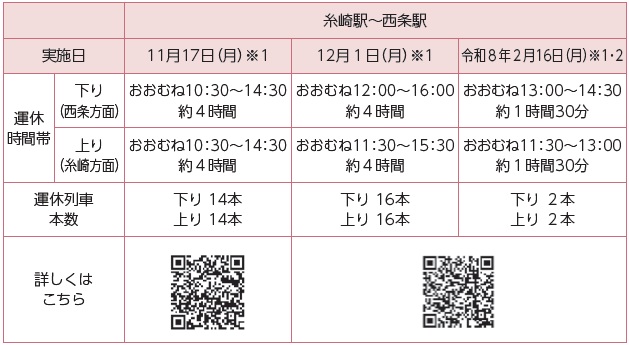 ※1 糸崎駅~三原駅では、一部列車を運転します。