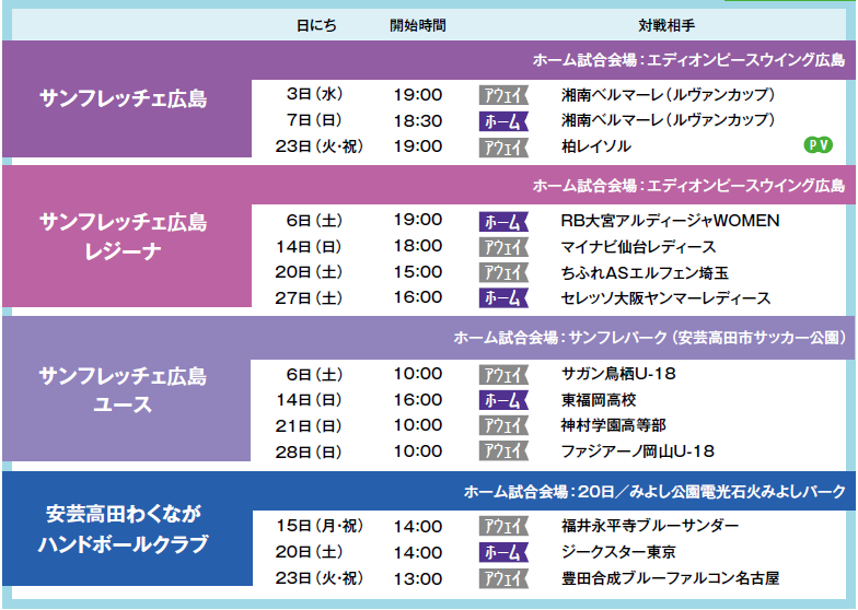 スポーツ 安芸高田市ゆかりのスポーツチームを応援しよう!9月の試合日程 2/30 前の記事 次の記事 発行日 : 2025年08月28日 自治体名 : 広島県安芸高田市 広報紙名 : 広報あきたかた 令和7年9月号 ※7月31日(木)時点の日程です。 〔PV〕道の駅「三矢の里あきたかた」でのパブリックビューイング[J1リーグ全38試合を放映] Tweet シェアする イベント情報 今月のスマートフォン教室・相談会