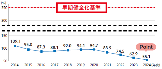 ・早期健全化基準…地方公共団体の財政の健全化に関する法律で定められた財政上問題がある基準