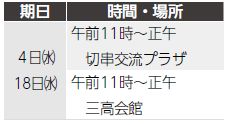 11日(水・祝)・23日(月・祝)
