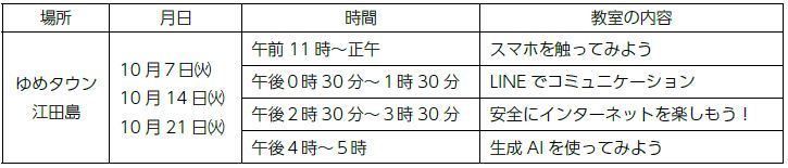 3日間で合計12講座!ご自身のペースで、学びたい内容を選んで参加いただけます。スマホを持っていない方もご安心ください!教室で貸出機をご用意していますので、お気軽にご参加ください。どの携帯電話会社をご利用していても大丈夫です!