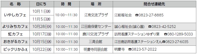 ■地域のカフェ(認知症カフェ)に参加してみませんか※各参加費100円(お茶菓子代)