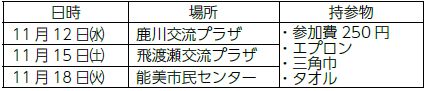 日時:10月26日(日)午前10時~11時45分、午後1時~3時30分