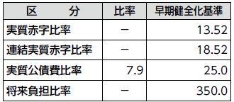 令和6年度決算に基づく本市の各指標は次のとおりで、早期健全化・経営健全化の基準を超えるものはありません。