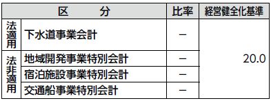 ・資金不足比率…公営企業会計を対象に、資金不足額をその企業の事業規模で割った比率。資金不足比率は会計ごとに算定を行う。