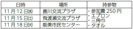 10月21日に、鷲部交流プラザにおいて江田島町老人クラブ連合会の男性料理教室を開催しました。13名が参加され、骨粗しょう症予防について学び、調理実習を行いました。