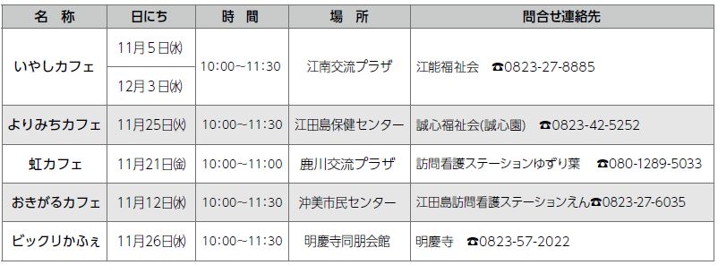 ■地域のカフェ(認知症カフェ)に参加してみませんか※各参加費100円(お茶菓子代)
