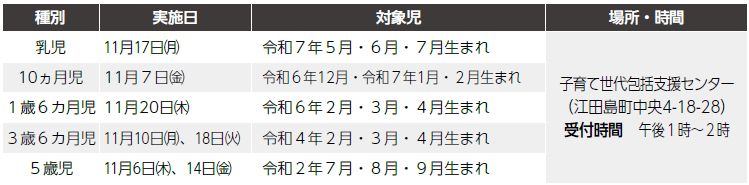 ※対象児には個別に通知します。1週間前までに通知が届かない場合は、子育て支援課へご連絡ください。