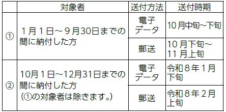 ▽社会保険料(国民年金保険料)控除証明書の送付時期