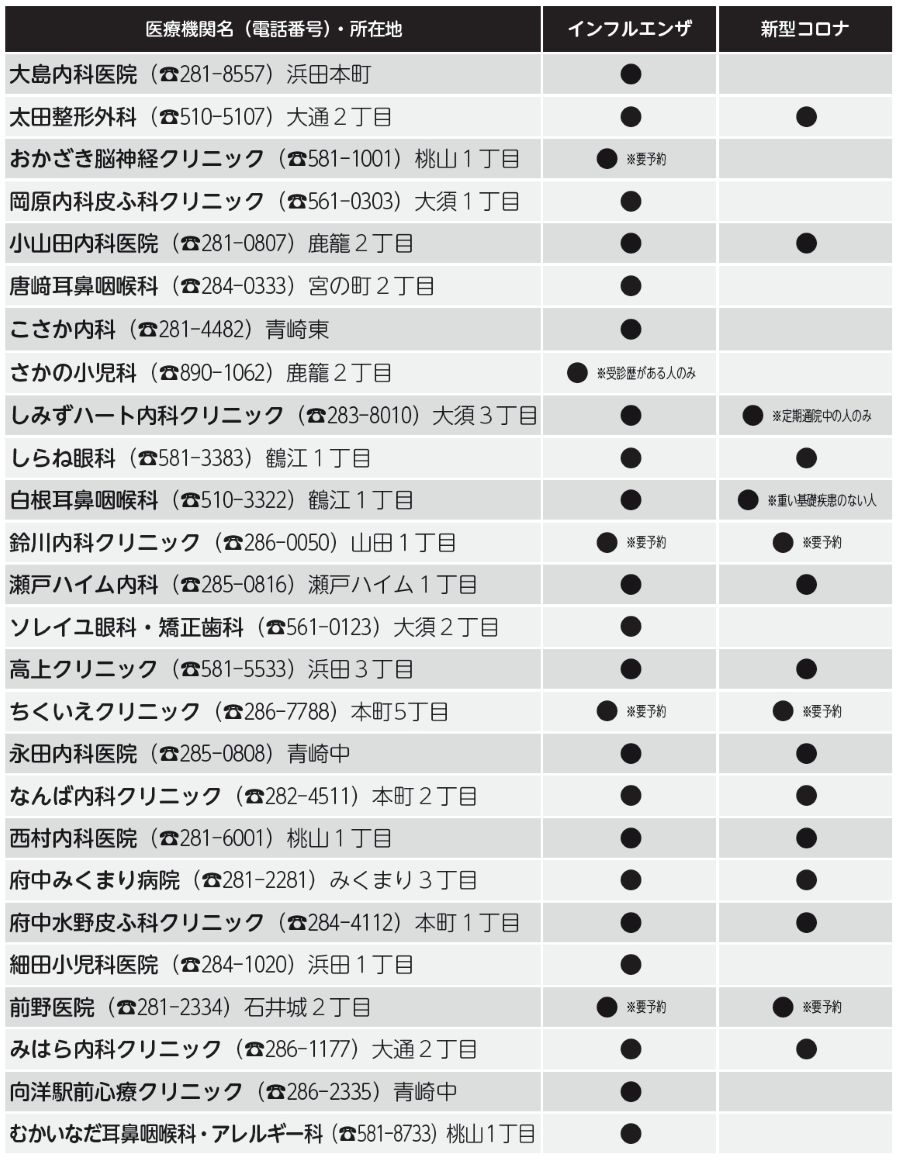■町内の実施医療機関 (注意)予約が必要な場合があります。