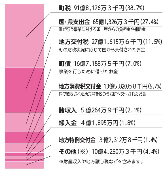 府中町の令和6年度決算は、適正な事業運営に努めた結果、一般会計、特別会計(土地取得・国民健康保険・介護保険・後期高齢者医療)、下水道事業会計のいずれの会計も黒字決算となりました。特に一般会計歳入においては、地元大手企業の業績好調を受けた法人町民税の増収を要因として、歳入総額は前年度対比28億355万7千円増となりました。
