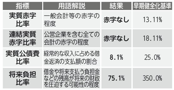 令和6年度決算に基づいた府中町の財政状況は、いずれの比率も基準を下回っています。