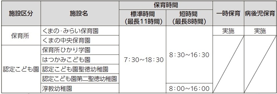 ※認定こども園については、教育認定(幼稚園部分)と保育認定(保育所部分)に分かれます。教育認定の利用については直接園にお問い合わせください。