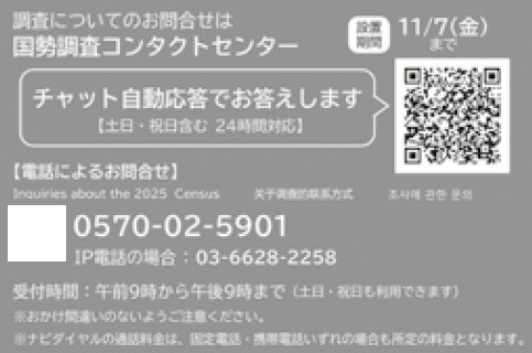国勢調査は、令和7年10月1日現在で日本に住んでいるすべての人と世帯を対象に行われます。回答が確認できない場合は、改めて回答状況を確認させていただきます。