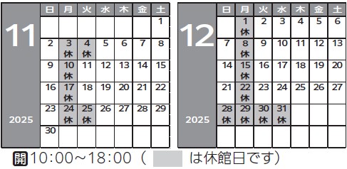 日時:11月15日(土)、12月6日(土)15:30~16:00