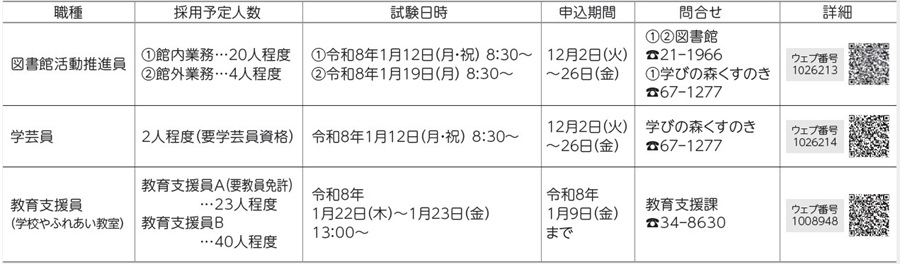 しごと 会計年度任用職員を募集します 19/40 前の記事 次の記事 記事を読み上げる 発行日 : 2025年12月01日 自治体名 : 山口県宇部市 広報紙名 : 広報うべ 令和7年12月号 Tweet シェアする 正規職員を募集します 宴会でも残さず食べよう! 30(さんまる)・10(いちまる)運動