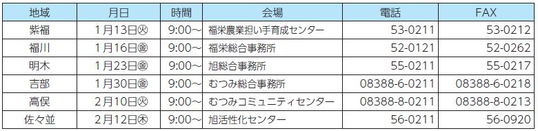 申込:開設日の3日前までに、総合事務所、支所・出張所まで電話またはFAX、市HP