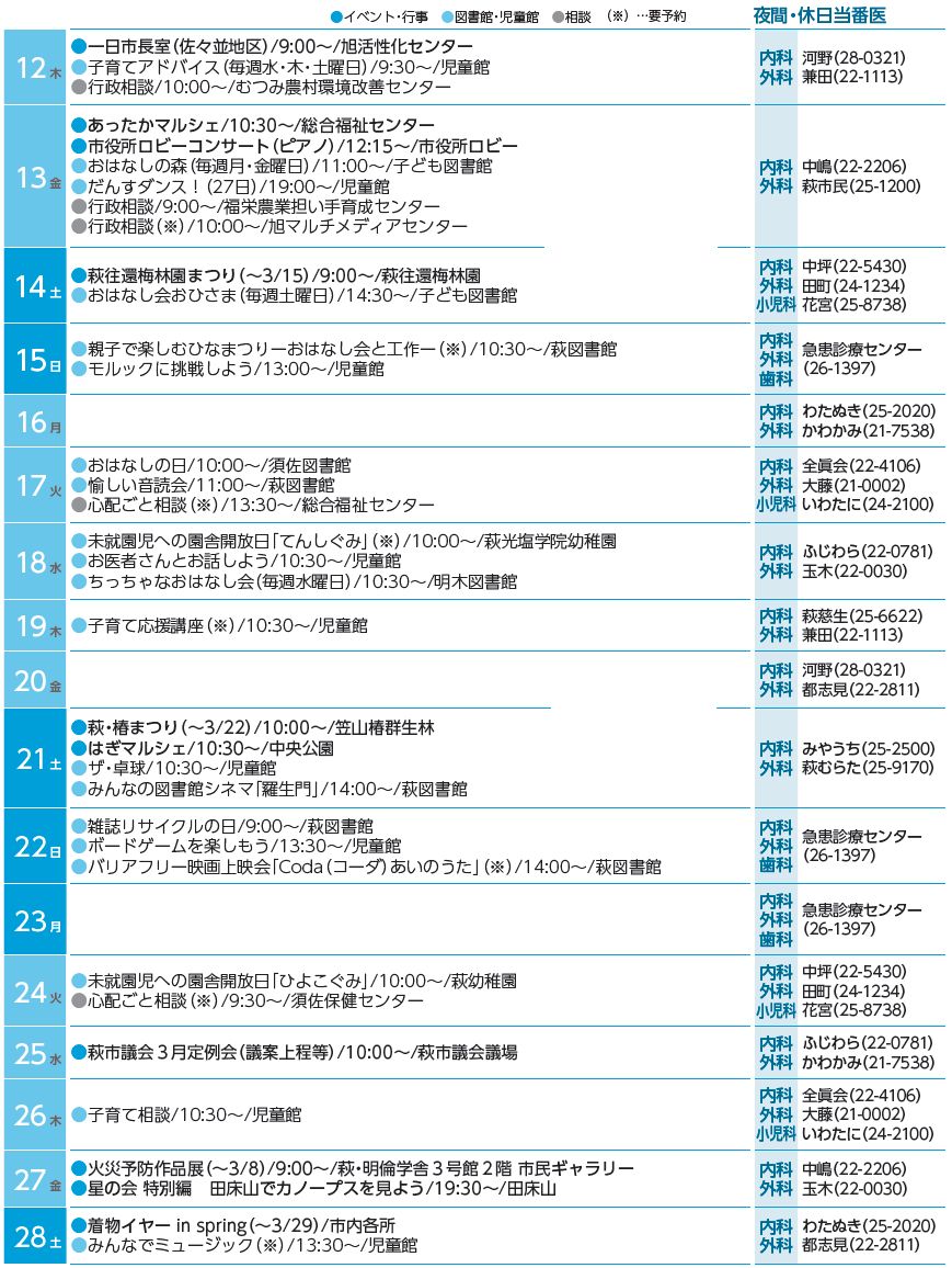 くらし 2月情報カレンダー 23/35 前の記事 次の記事 発行日 : 2026年02月15日 自治体名 : 山口県萩市 広報紙名 : 広報はぎ 2026年2月15日号 萩図書館行事については、人数制限等がある場合があります。詳細は、萩図書館【電話】25-6355までお問い合わせください。 Tweet シェアする 2月保健ガイド 人の動き