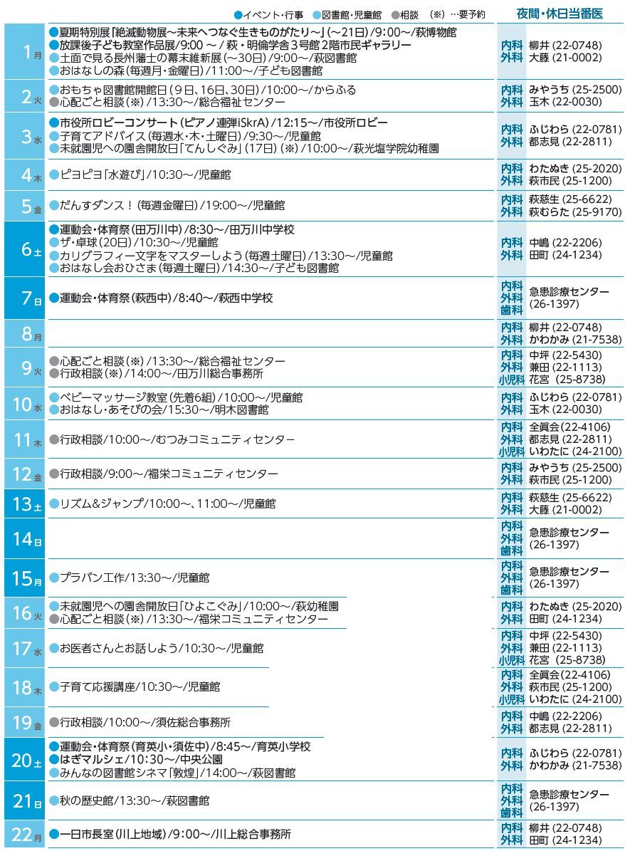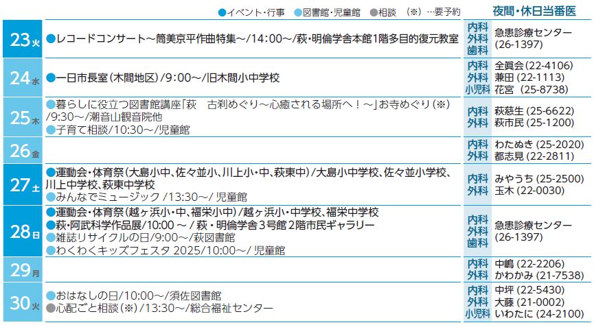 くらし 9月情報カレンダー 39/53 前の記事 次の記事 発行日 : 2025年09月01日 自治体名 : 山口県萩市 広報紙名 : 広報はぎ 2025年9月号 萩図書館行事については、人数制限等がある場合があります。詳細は、萩図書館【電話】25-6355までお問い合わせください。 Tweet シェアする エコライフに挑戦!Vol.13 当番医が変わった場合