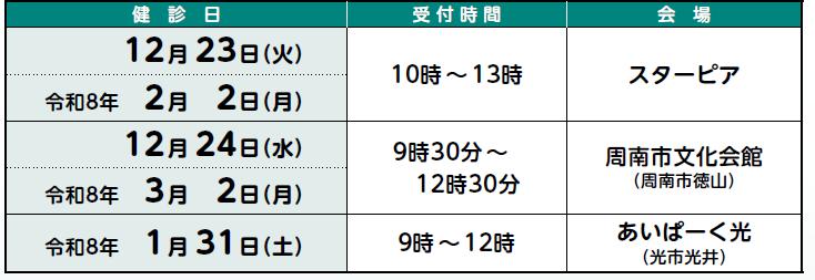 申込方法:健診日の3週間前までに電話または、市窓口にて