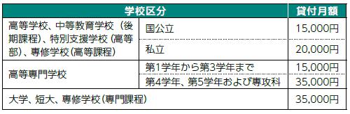 対象:向学心があり、人物と学業が優秀でありながら、経済的理由により就学が困難で、次の条件を満たす人