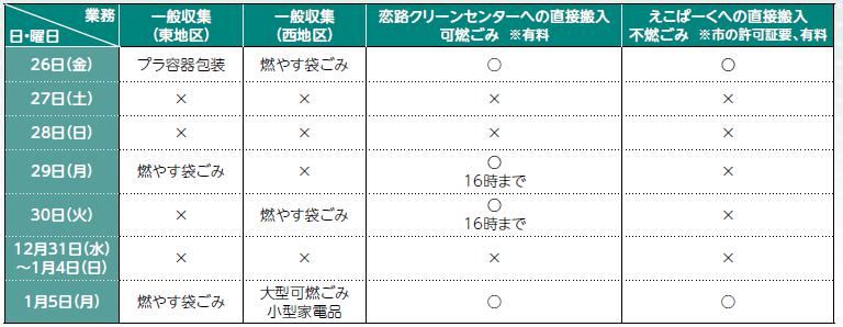 1月1日(木)、2日(金)の収集は行いません。次のとおり収集日を変更します。