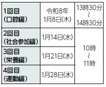 内容:フレイル予防をテーマにした全4回の教室