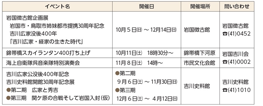 今年は、現在の岩国の基礎を築いた吉川広家公の没後400年の節目の年です。