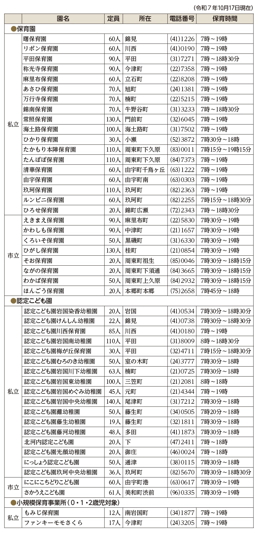 ※認定こども園、小規模保育事業所へ入園を希望される場合は各園に直接問い合わせてください