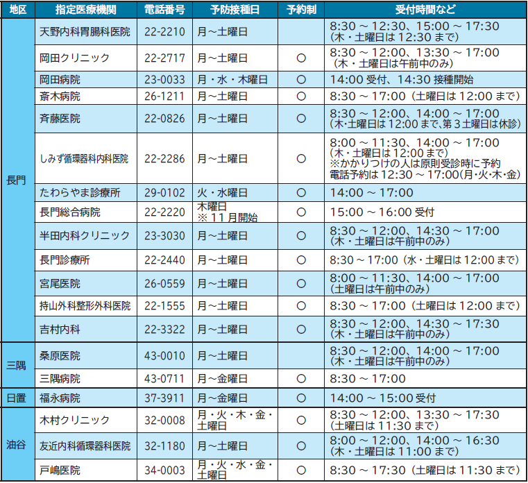 接種場所:市内医療機関 ※予約制となっている医療機関には事前に連絡してください