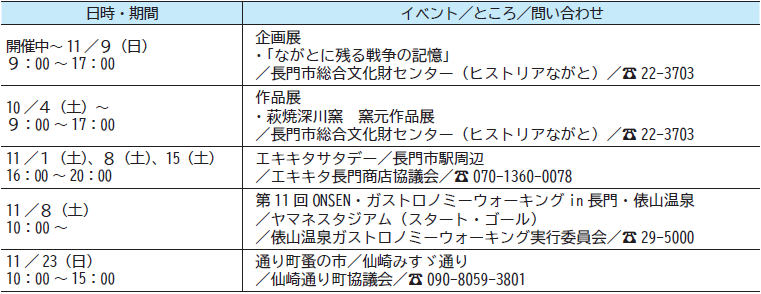 イベント 11月の予定表 イベント情報 18/26 前の記事 次の記事 発行日 : 2025年11月01日 自治体名 : 山口県長門市 広報紙名 : 長門市広報 知っちょこ 令和7年11月号 ※掲載している情報は10月19日時点のもので、イベントなどは中止・延期となることがあります Tweet シェアする 暮らしの知っちょこ 文化情報 11月の予定表 図書館
