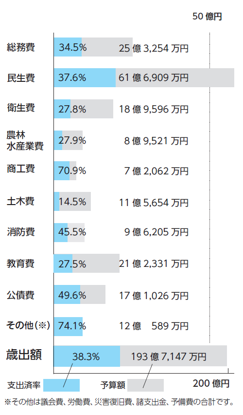 本市の令和7年度上半期財政状況を地方自治法243条の3第1項の規定に基づきお知らせします。9月末現在の一般会計予算は、6月・9月補正により当初予算と比べ11億8,947万円増加し、193億7,147万円となっています。